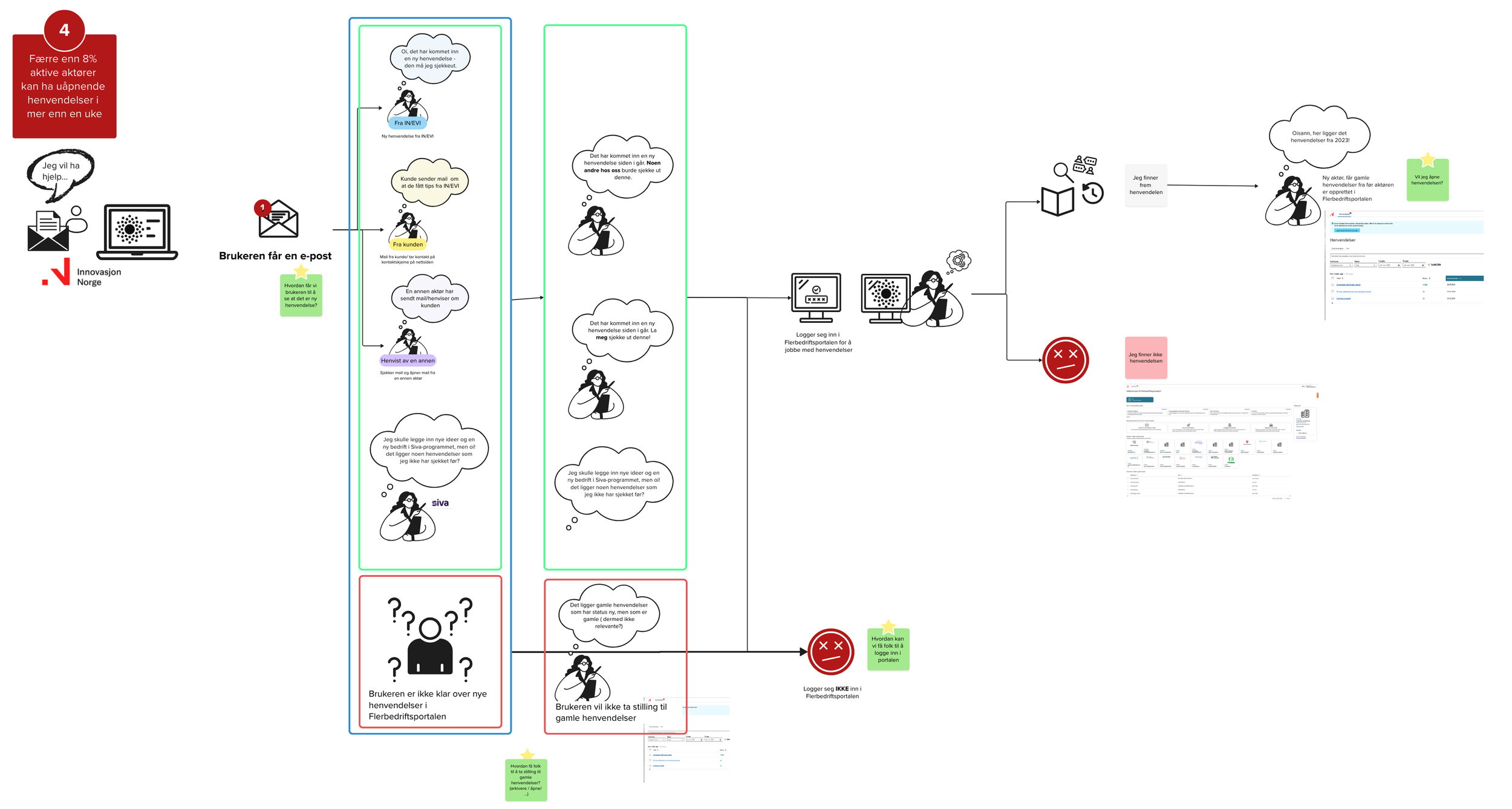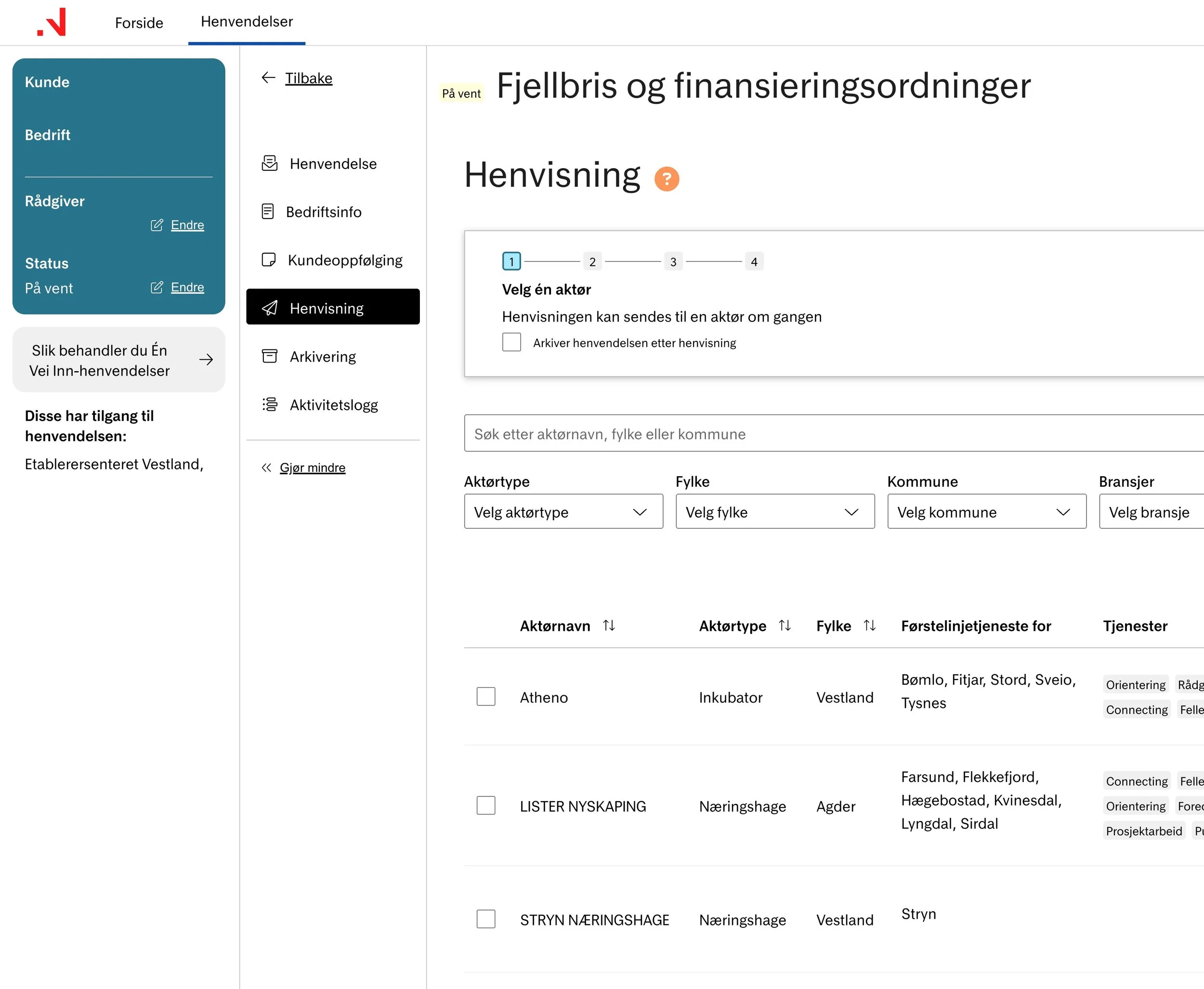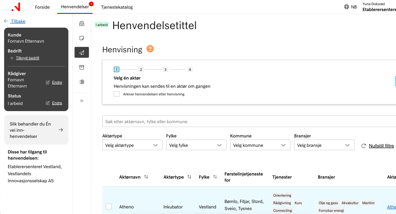 To connect the entire support system, it was important that users felt confident referring customers to the next relevant actor. While actors in the same region already had some routines in place, they did not use a shared digital platform. Therefore, we introduced Flerbedriftsportalen, which provides a new tool for digital collaboration.